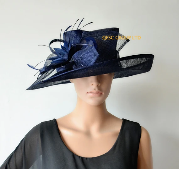 New Navy Blue Arrival Large Matte Satin Fascinator Sinamay Women S Hat Formal Dress Hats For Wedding Races Free Shipping Fedoras Aliexpress